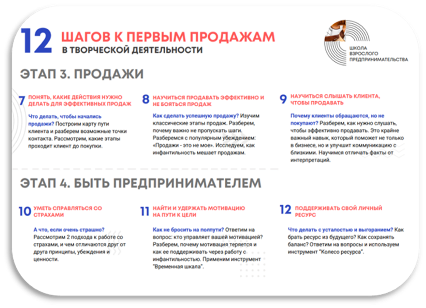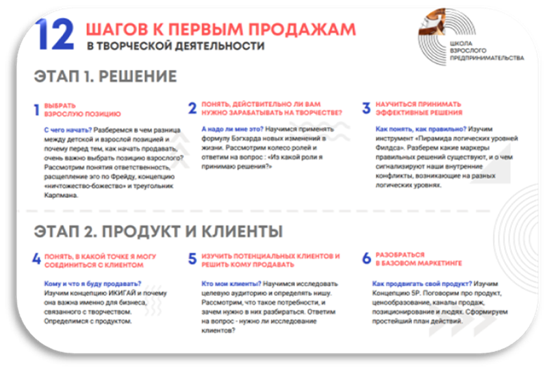 «12 ШАГОВ К ПЕРВЫМ ПРОДАЖАМ в творческой деятельности»